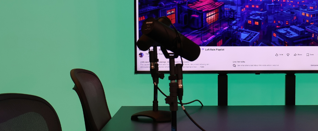 Um cenário pensado para vídeo profissional, lives e gravações estratégicas.
