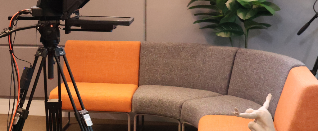 Empresas usam esse formato para gravar podcasts corporativos, reuniões estratégicas em vídeo, programas internos ou discussões com especialistas.